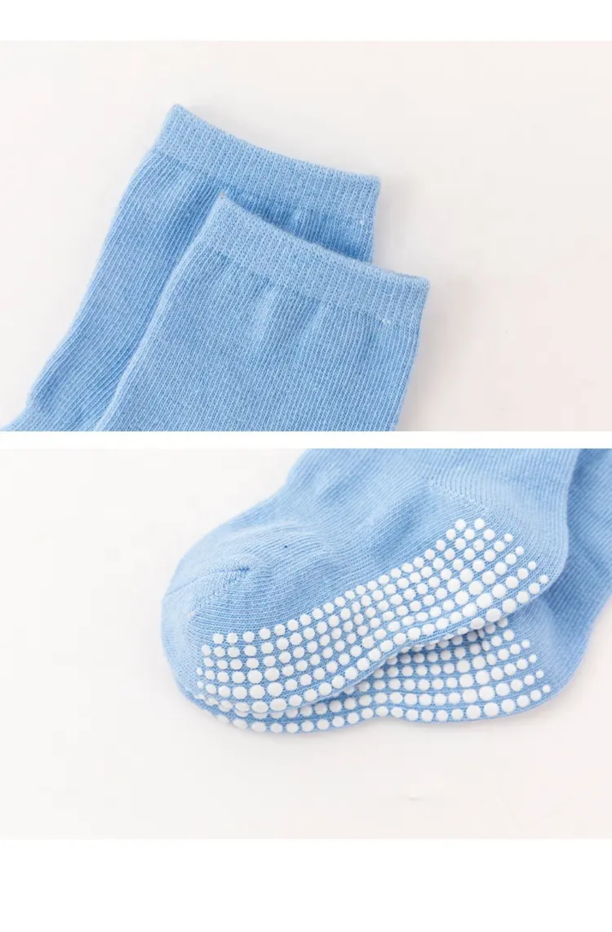 Mooie gripsokken in wit, roze en blauw. De sokken hebben lekker zachte stof én antislip nopjes onder de zool, ideaal om uitglijden te voorkomen op gladde vloeren. Elke dag fris, elke stap vol vertrouwen. De neutrale kleur past bij alle outfits, waardoor het mix-&-matchen moeiteloos gaat. Voor optimaal en veilig speelplezier!